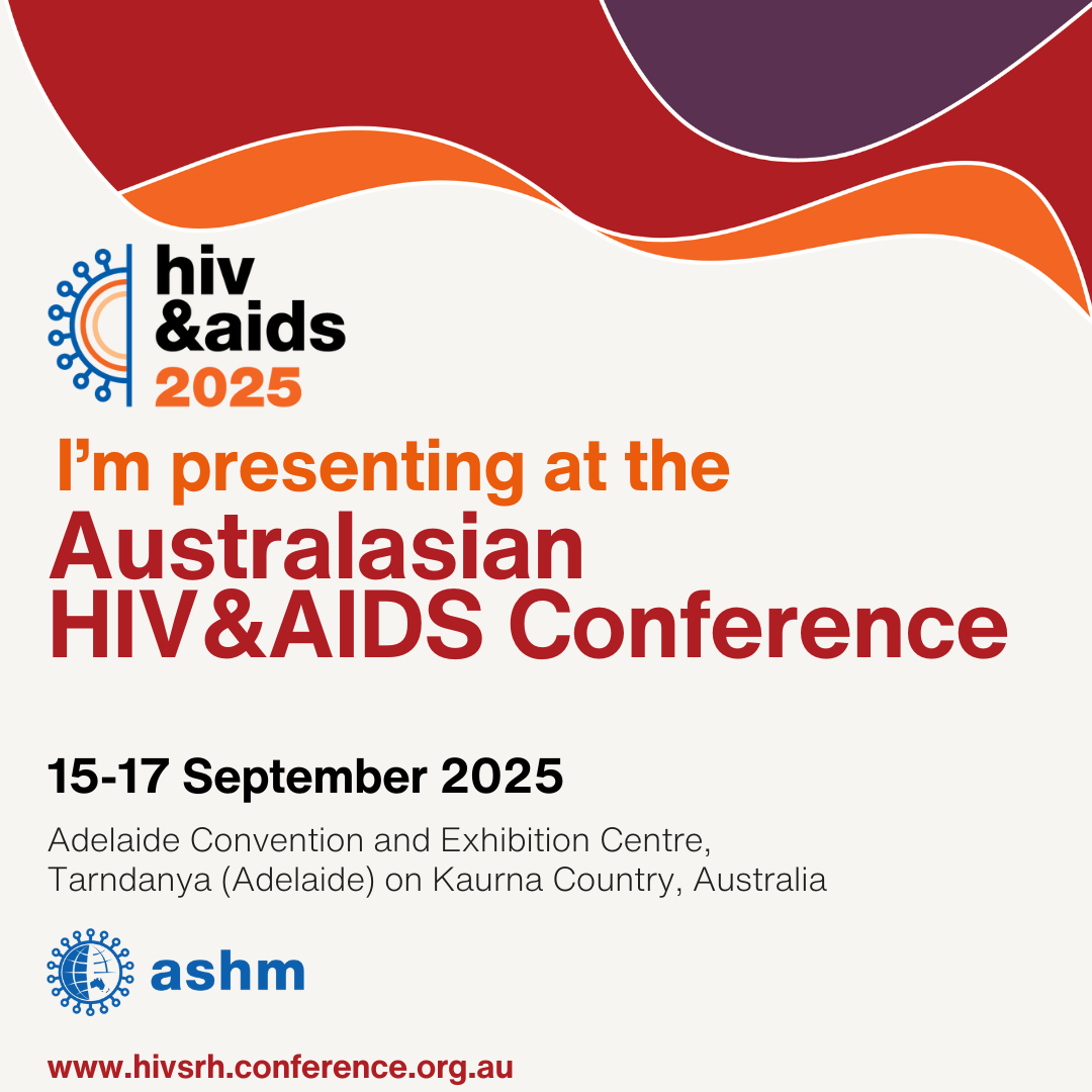 I'm excited to be presenting at the Australasian HIV&AIDS Conference! I’ll be presenting on [TOPIC OF YOUR PRESENTATION].